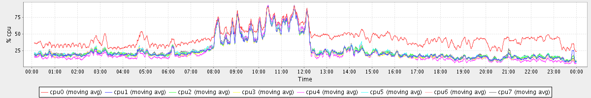 avg(cpu0) = 2.28 avg(cpu1) = 0.36 avg(cpu2) = 0.38 avg(cpu3) = 0.29 avg(cpu4) = 0.23 avg(cpu5) = 0.25 avg(cpu6) = 0.31 avg(cpu7) = 0.25