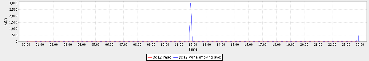 avg(sda2 read) = 0.10 avg(sda2 write) = 23.43