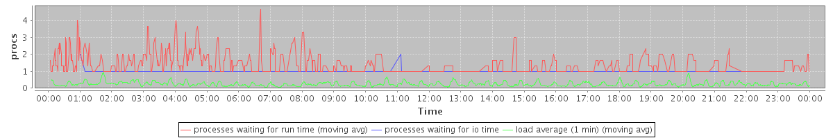 avg(processes waiting for run time) = 0.36 avg(processes waiting for io time) = 0.01 avg(load average (1 min)) = 0.25