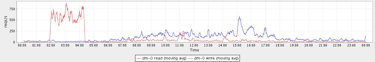avg(dm-1 read) = 586.50 avg(dm-1 write) = 0.44