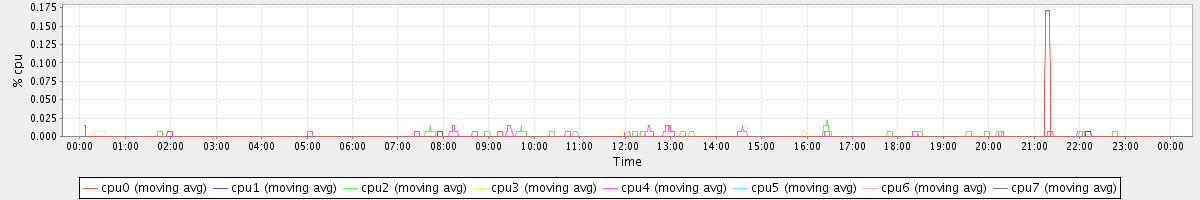 avg(cpu0) = 0.01 avg(cpu1) = 0.01 avg(cpu2) = 0.10 avg(cpu3) = 0.05 avg(cpu4) = 0.21 avg(cpu5) = 0.01 avg(cpu6) = 0.01 avg(cpu7) = 0.00