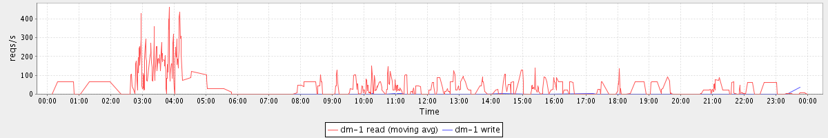 avg(dm-1 read) = 445.38 avg(dm-1 write) = 0.15