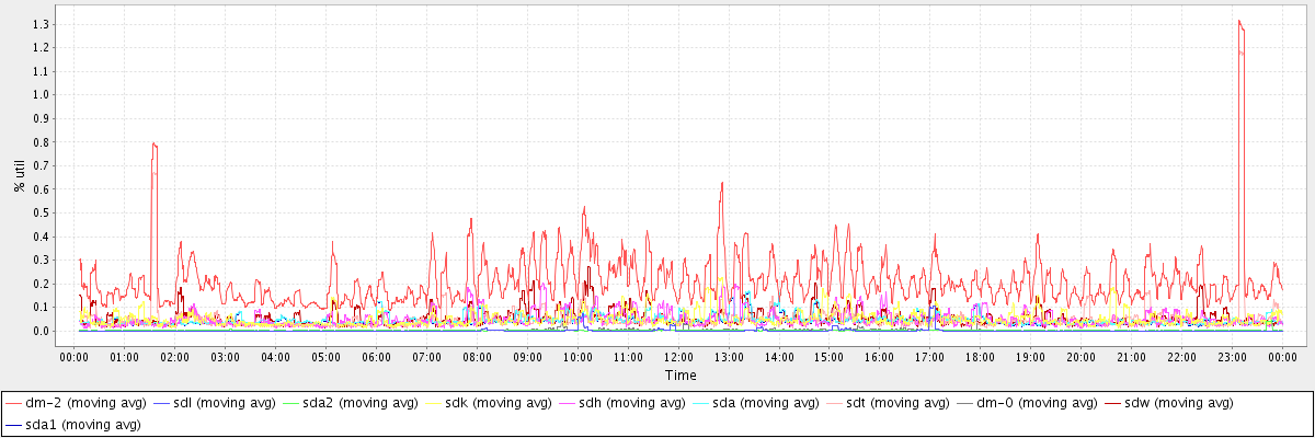 avg(dm-2) = 0.22 avg(sdl) = 0.00 avg(sda2) = 0.00 avg(sdk) = 0.05 avg(sdh) = 0.05 avg(sda) = 0.05 avg(sdt) = 0.05 avg(dm-0) = 0.00 avg(sdw) = 0.06 avg(sda1) = 0.04