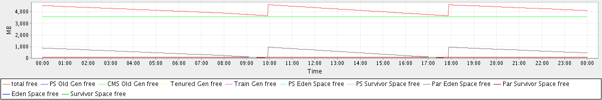 avg(total free) = 4196.87 avg(PS Old Gen free) = 0.00 avg(CMS Old Gen free) = 3562.89 avg(Tenured Gen free) = 0.00 avg(Train Gen free) = 0.00 avg(PS Eden Space free) = 0.00 avg(PS Survivor Space free) = 0.00 avg(Par Eden Space free) = 534.73 avg(Par Survivor Space free) = 99.25 avg(Eden Space free) = 0.00 avg(Survivor Space free) = 0.00