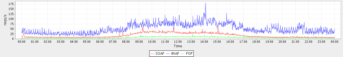 Host zm07.stanford.edu: Mailboxd: Request Rate by Client Protocol