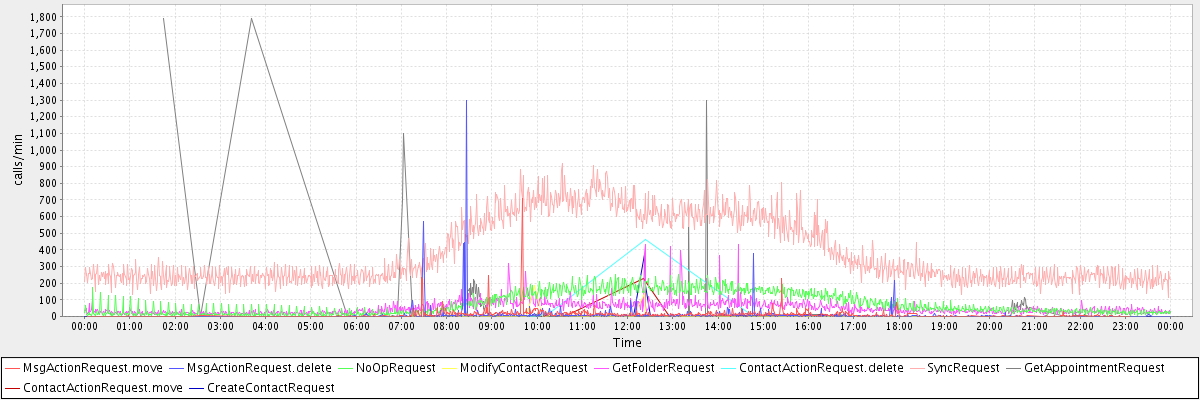max(MsgActionRequest.move) = 708.00 max(MsgActionRequest.delete) = 1296.00 max(NoOpRequest) = 254.00 max(ModifyContactRequest) = 188.00 max(GetFolderRequest) = 435.00 max(ContactActionRequest.delete) = 465.00 max(SyncRequest) = 922.00 max(GetAppointmentRequest) = 1788.00 max(ContactActionRequest.move) = 226.00 max(CreateContactRequest) = 371.00