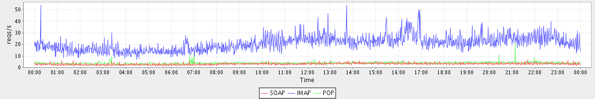 Host zm01.stanford.edu: Mailboxd: Request Rate by Client Protocol