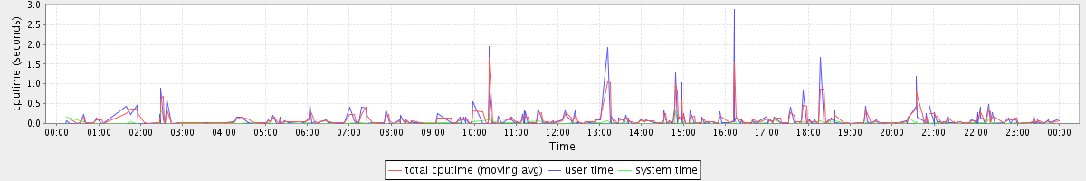 avg(total cputime) = 0.02 avg(user time) = 0.01 avg(system time) = 0.00