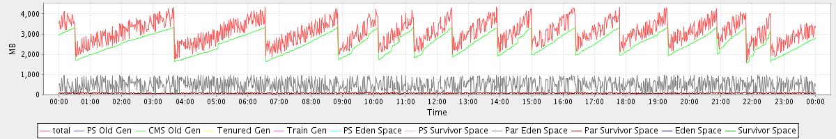 avg(total) = 3103.49 avg(PS Old Gen) = 0.00 avg(CMS Old Gen) = 2531.90 avg(Tenured Gen) = 0.00 avg(Train Gen) = 0.00 avg(PS Eden Space) = 0.00 avg(PS Survivor Space) = 0.00 avg(Par Eden Space) = 491.08 avg(Par Survivor Space) = 80.51 avg(Eden Space) = 0.00 avg(Survivor Space) = 0.00