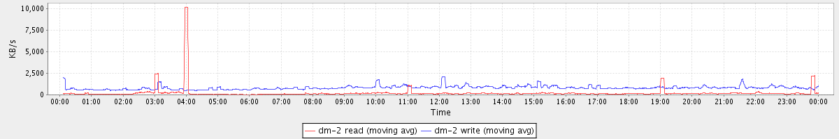 avg(dm-1 read) = 8.74 avg(dm-1 write) = 0.08