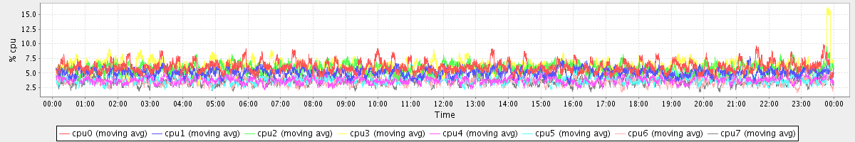 avg(cpu0) = 6.09 avg(cpu1) = 5.14 avg(cpu2) = 5.77 avg(cpu3) = 6.25 avg(cpu4) = 3.85 avg(cpu5) = 3.95 avg(cpu6) = 3.73 avg(cpu7) = 3.66
