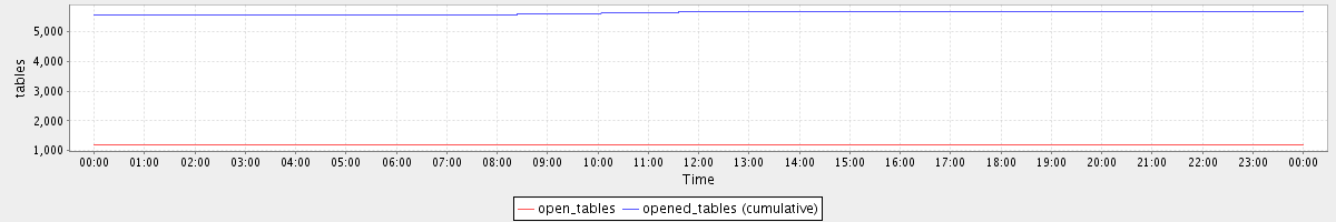 avg(open_tables) = 1199.98 avg(opened_tables (cumulative)) = 5629.43