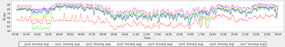 avg(cpu0) = 1.69 avg(cpu1) = 0.36 avg(cpu2) = 0.39 avg(cpu3) = 0.32 avg(cpu4) = 0.23 avg(cpu5) = 0.32 avg(cpu6) = 0.36 avg(cpu7) = 0.30