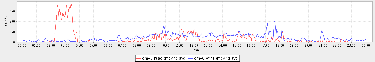avg(dm-1 read) = 378.44 avg(dm-1 write) = 0.23