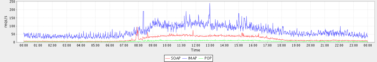 Host zm07.stanford.edu: Mailboxd: Request Rate by Client Protocol