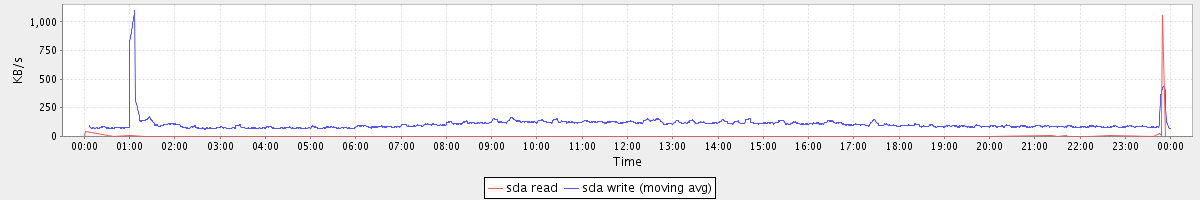 avg(sda1 read) = 0.01 avg(sda1 write) = 2.26