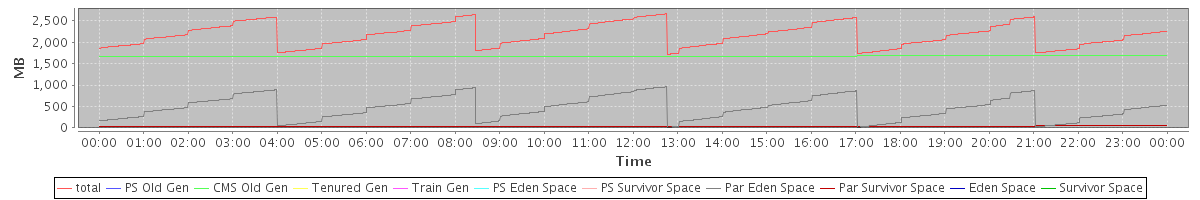 avg(total) = 2172.52 avg(PS Old Gen) = 0.00 avg(CMS Old Gen) = 1676.52 avg(Tenured Gen) = 0.00 avg(Train Gen) = 0.00 avg(PS Eden Space) = 0.00 avg(PS Survivor Space) = 0.00 avg(Par Eden Space) = 459.35 avg(Par Survivor Space) = 36.65 avg(Eden Space) = 0.00 avg(Survivor Space) = 0.00