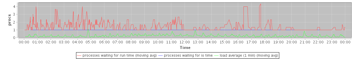 avg(processes waiting for run time) = 0.35 avg(processes waiting for io time) = 0.01 avg(load average (1 min)) = 0.24