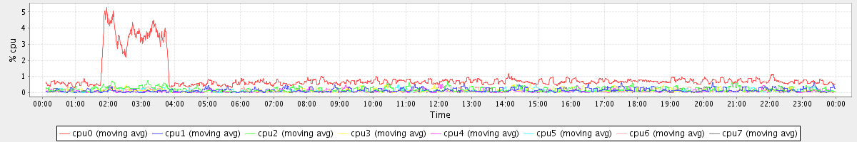 avg(cpu0) = 0.07 avg(cpu1) = 0.01 avg(cpu2) = 0.03 avg(cpu3) = 0.01 avg(cpu4) = 0.00 avg(cpu5) = 0.00 avg(cpu6) = 0.01 avg(cpu7) = 0.00