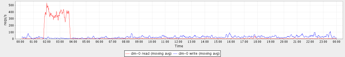 avg(dm-1 read) = 452.10 avg(dm-1 write) = 2.66
