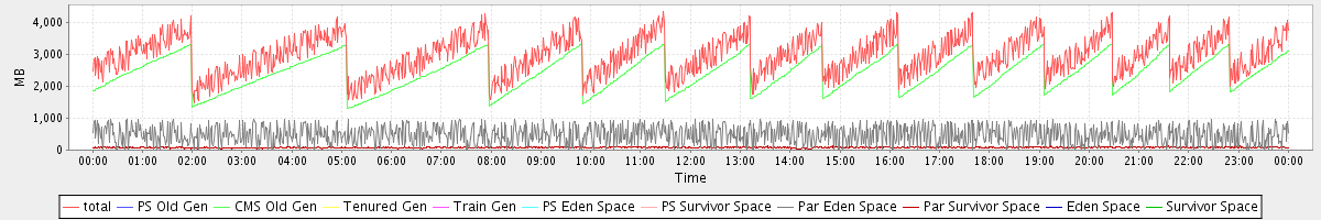 avg(total) = 2987.08 avg(PS Old Gen) = 0.00 avg(CMS Old Gen) = 2422.57 avg(Tenured Gen) = 0.00 avg(Train Gen) = 0.00 avg(PS Eden Space) = 0.00 avg(PS Survivor Space) = 0.00 avg(Par Eden Space) = 483.43 avg(Par Survivor Space) = 81.09 avg(Eden Space) = 0.00 avg(Survivor Space) = 0.00