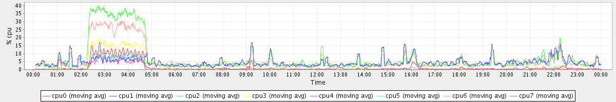 avg(cpu0) = 2.07 avg(cpu1) = 0.26 avg(cpu2) = 0.33 avg(cpu3) = 0.21 avg(cpu4) = 0.16 avg(cpu5) = 0.20 avg(cpu6) = 0.24 avg(cpu7) = 0.21