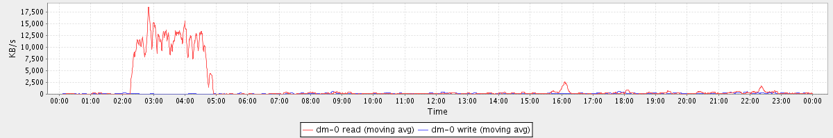 avg(dm-1 read) = 14.61 avg(dm-1 write) = 0.03
