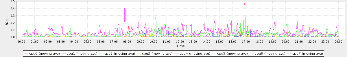 avg(cpu0) = 1.01 avg(cpu1) = 0.69 avg(cpu2) = 0.60 avg(cpu3) = 0.68 avg(cpu4) = 0.42 avg(cpu5) = 0.41 avg(cpu6) = 0.31 avg(cpu7) = 0.29