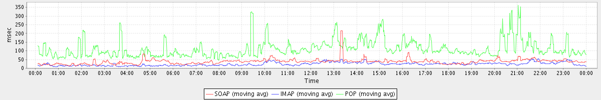 avg(IMAP) = 19.67 avg(IMAP SSL) = 1157.46 avg(POP) = 0.00 avg(POP SSL) = 3.82