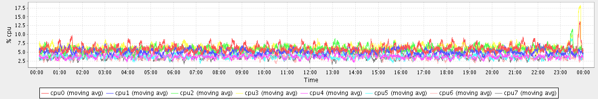 avg(cpu0) = 0.02 avg(cpu1) = 0.01 avg(cpu2) = 0.12 avg(cpu3) = 0.06 avg(cpu4) = 0.21 avg(cpu5) = 0.00 avg(cpu6) = 0.01 avg(cpu7) = 0.01