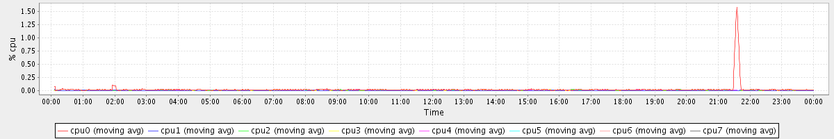 avg(cpu0) = 0.01 avg(cpu1) = 0.00 avg(cpu2) = 0.11 avg(cpu3) = 0.07 avg(cpu4) = 0.23 avg(cpu5) = 0.01 avg(cpu6) = 0.01 avg(cpu7) = 0.01
