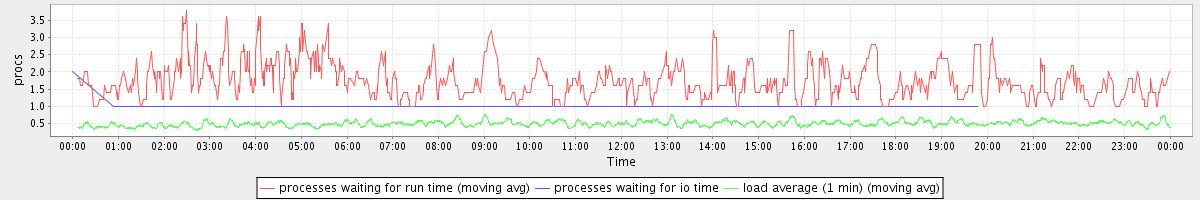 avg(processes waiting for run time) = 0.62 avg(processes waiting for io time) = 0.00 avg(load average (1 min)) = 0.49