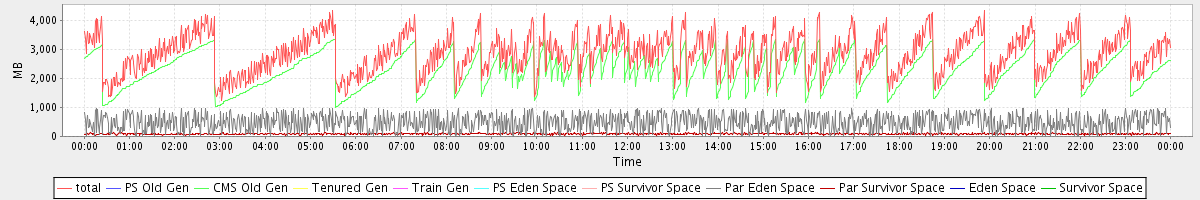 avg(total) = 2852.73 avg(PS Old Gen) = 0.00 avg(CMS Old Gen) = 2279.80 avg(Tenured Gen) = 0.00 avg(Train Gen) = 0.00 avg(PS Eden Space) = 0.00 avg(PS Survivor Space) = 0.00 avg(Par Eden Space) = 485.46 avg(Par Survivor Space) = 87.46 avg(Eden Space) = 0.00 avg(Survivor Space) = 0.00