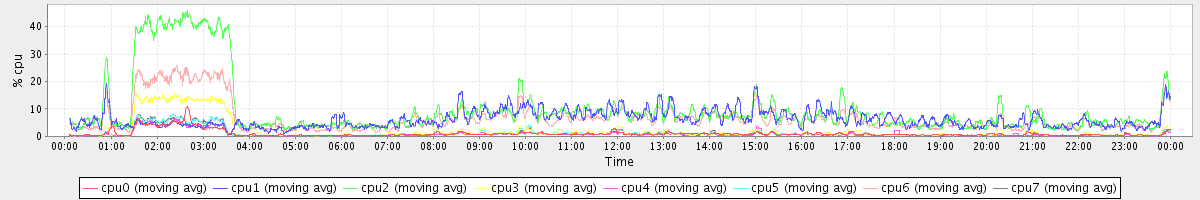 avg(cpu0) = 1.13 avg(cpu1) = 0.29 avg(cpu2) = 0.31 avg(cpu3) = 0.25 avg(cpu4) = 0.19 avg(cpu5) = 0.23 avg(cpu6) = 0.27 avg(cpu7) = 0.22