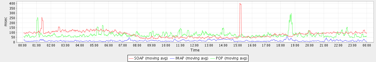 Host zm01.stanford.edu: Mailboxd: Response Time by Client Protocol