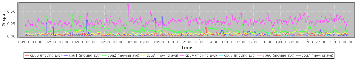 avg(cpu0) = 0.54 avg(cpu1) = 0.32 avg(cpu2) = 0.23 avg(cpu3) = 0.23 avg(cpu4) = 0.26 avg(cpu5) = 0.18 avg(cpu6) = 0.15 avg(cpu7) = 0.12