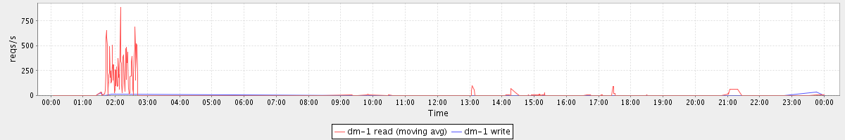 avg(dm-1 read) = 9.21 avg(dm-1 write) = 0.04