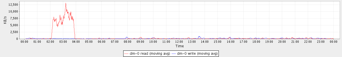 avg(dm-1 read) = 11.95 avg(dm-1 write) = 0.04