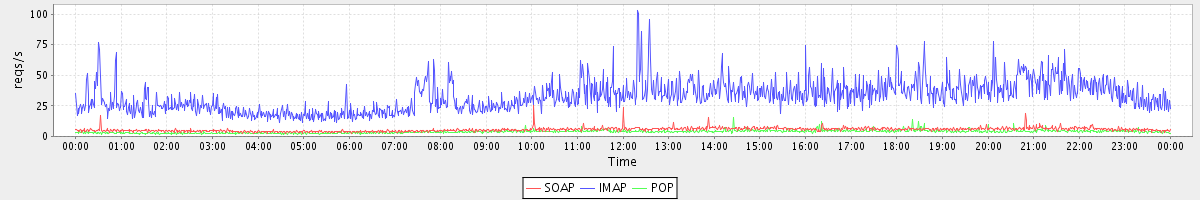Host zm09.stanford.edu: Mailboxd: Request Rate by Client Protocol