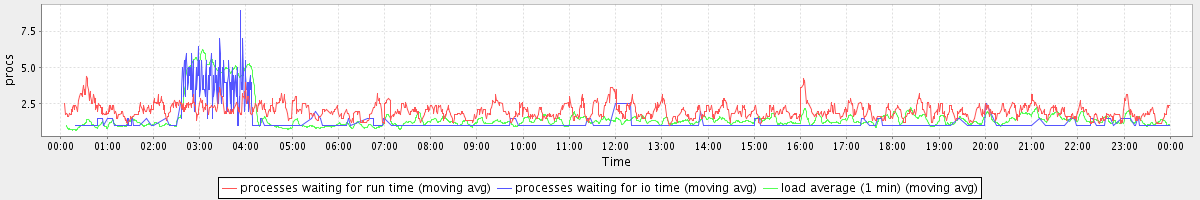 avg(processes waiting for run time) = 1.26 avg(processes waiting for io time) = 0.37 avg(load average (1 min)) = 1.54