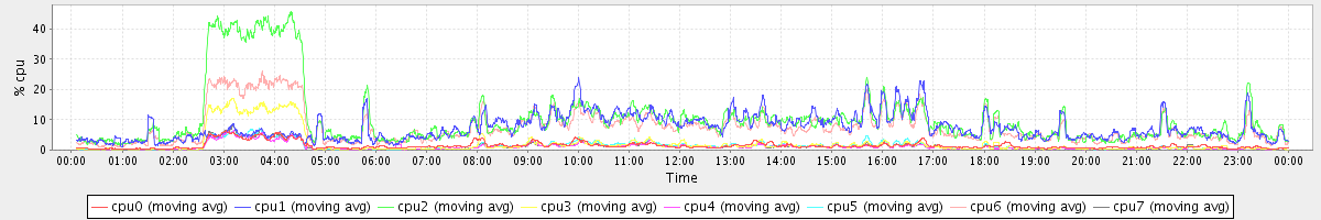 avg(cpu0) = 1.67 avg(cpu1) = 0.68 avg(cpu2) = 0.70 avg(cpu3) = 0.61 avg(cpu4) = 0.49 avg(cpu5) = 0.60 avg(cpu6) = 0.64 avg(cpu7) = 0.59