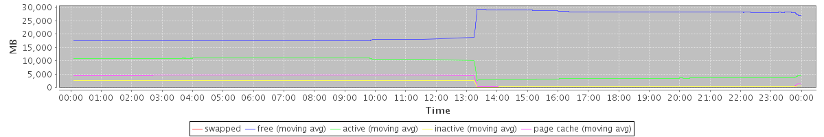 avg(swapped) = 0.00 avg(free) = 22753.63 avg(active) = 7302.74 avg(inactive) = 1551.54 avg(page cache) = 2566.45