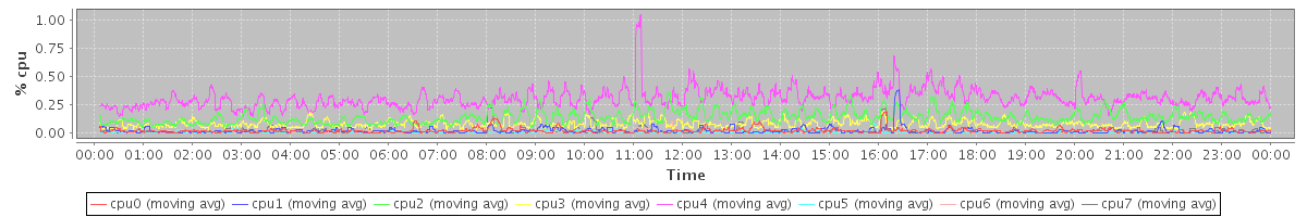 avg(cpu0) = 0.30 avg(cpu1) = 0.24 avg(cpu2) = 0.19 avg(cpu3) = 0.20 avg(cpu4) = 0.23 avg(cpu5) = 0.17 avg(cpu6) = 0.13 avg(cpu7) = 0.10