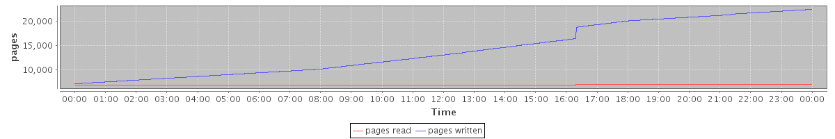 avg(pages read) = 6881.86 avg(pages written) = 14109.63