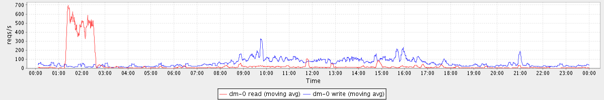 avg(dm-1 read) = 587.16 avg(dm-1 write) = 0.13