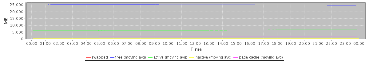 avg(swapped) = 0.00 avg(free) = 25128.29 avg(active) = 6427.95 avg(inactive) = 332.15 avg(page cache) = 1594.95
