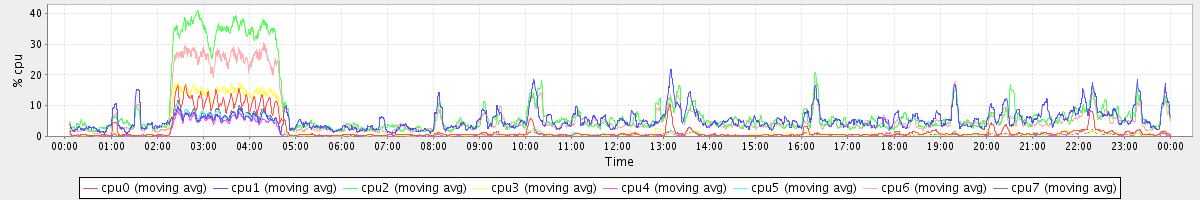 avg(cpu0) = 2.14 avg(cpu1) = 0.29 avg(cpu2) = 0.35 avg(cpu3) = 0.25 avg(cpu4) = 0.19 avg(cpu5) = 0.23 avg(cpu6) = 0.28 avg(cpu7) = 0.23