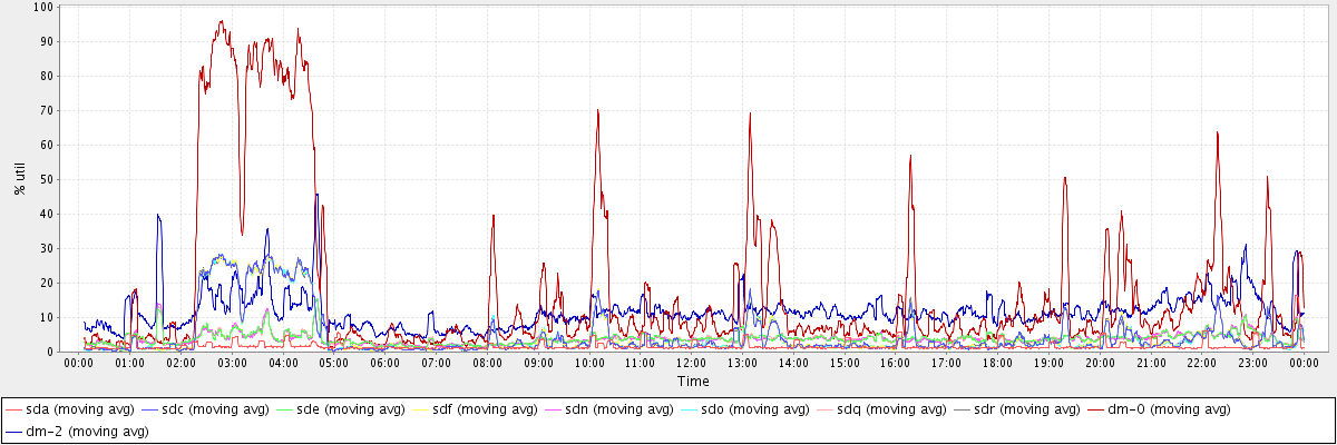 avg(sda) = 1.73 avg(sdc) = 4.81 avg(sde) = 3.92 avg(sdf) = 4.82 avg(sdn) = 3.93 avg(sdo) = 4.81 avg(sdq) = 3.95 avg(sdr) = 4.81 avg(dm-0) = 17.76 avg(dm-2) = 11.64