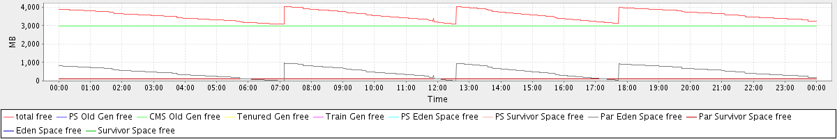 avg(total free) = 3559.74 avg(PS Old Gen free) = 0.00 avg(CMS Old Gen free) = 2963.25 avg(Tenured Gen free) = 0.00 avg(Train Gen free) = 0.00 avg(PS Eden Space free) = 0.00 avg(PS Survivor Space free) = 0.00 avg(Par Eden Space free) = 491.59 avg(Par Survivor Space free) = 104.89 avg(Eden Space free) = 0.00 avg(Survivor Space free) = 0.00