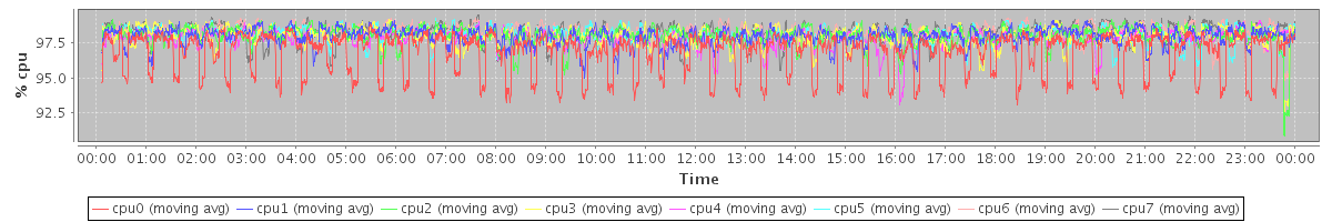avg(cpu0) = 96.82 avg(cpu1) = 97.97 avg(cpu2) = 98.04 avg(cpu3) = 97.98 avg(cpu4) = 97.93 avg(cpu5) = 98.08 avg(cpu6) = 98.30 avg(cpu7) = 98.26